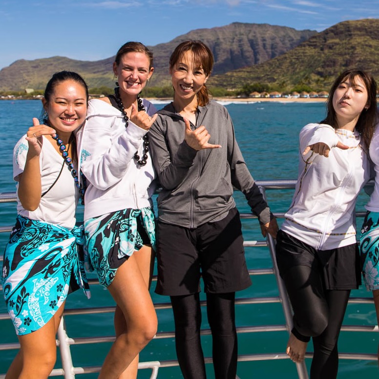 卒業旅行でハワイに行き、こちらのツアーに参加させていただきました。初めて野生のイルカやクジラを見ることができて本当に感動しました。ハワイについての色々なことも知ることができて勉強になりました!