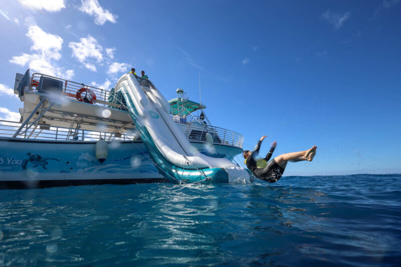 9월 8일 앤유크리에이션은 “슬라이드 포 라이프프” 라는 이벤트를 돌핀앤유 투어에서 진행했습니다. 돌핀앤유 보트에 설치된 20ft 워터 슬라이드를 한 번 타탈 때마다 포카이 해변 비치 클린업 이벤벤트를 위해 $5씩 기부되었습니다. 기부에 열정적인 우리 오하나 (가족)분들 덕분에 $1,045 가 모금되었습니다!
